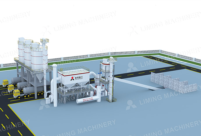 设备集破碎、烘干、粉磨、分级输送于一体,系统简单,布局紧凑,占地面积小,且可露天布置,节省大量投资成本。