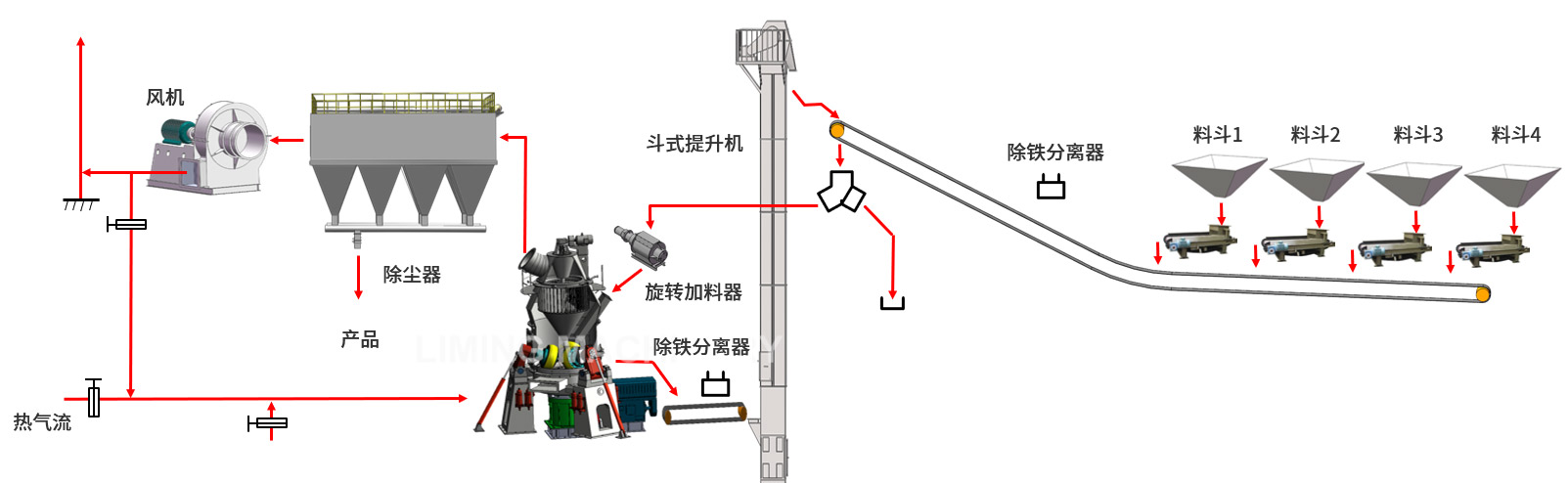 鉴于原料成分复杂、含水率高、可磨性差异大等特点,黎明重工历经二十余年研发,推出集烘干、粉磨、分级、输送于一体的LM节能粉磨设备。 该设备具备粉磨效率高、能耗低、入料粒度大、产品细度易调节、工艺流程简单、占地面积小、噪音低、粉尘排放量少、操作维护便捷、运行成本低、耐磨材料消耗少等多重优势。产品综合性能达到国际先进水平,可满足工业化大规模、智能化、集约化粉磨需求。 设备最大产能可达550吨/小时,能够适配日产200-2500吨水泥生产线的原料供应需求。